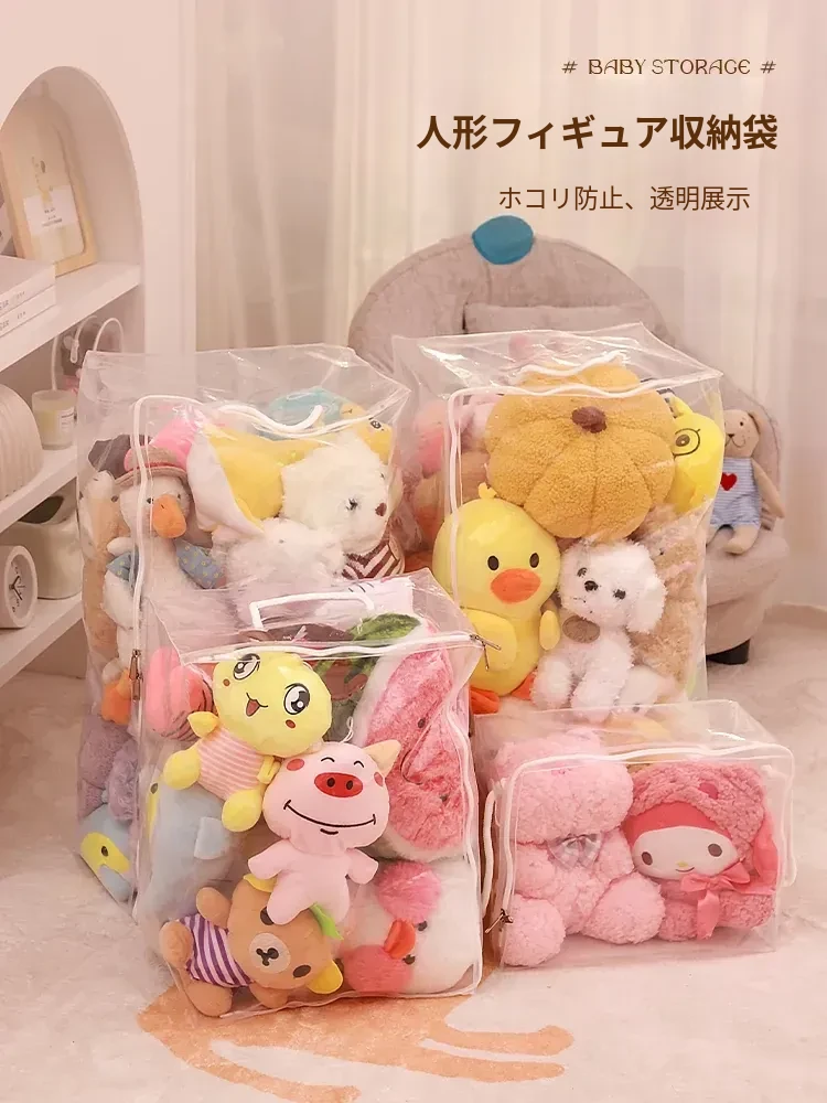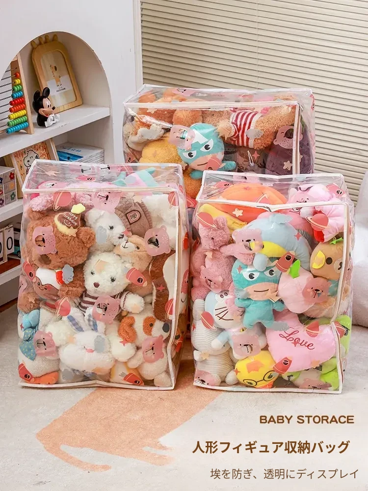 ぬいぐるみ収納袋|おもちゃ整理に最適なクリアファスナーケース|子供のぬいぐるみをすっきり整理!防塵&見やすいデザインで、遊び終わった後も簡単に片付けられます。お部屋がスッキリする収納の必需品!
