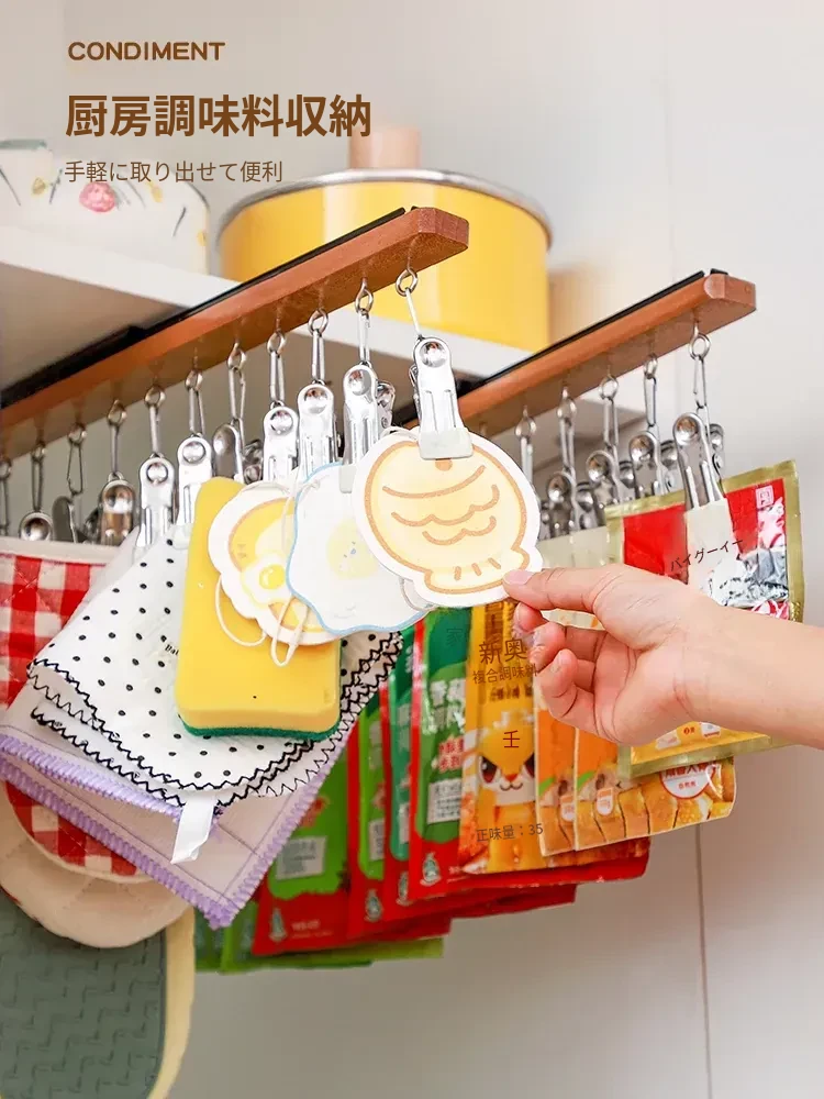 キッチン収納革命!袋入り調味料整理ラック - 深いキャビネット用スライドレール&フック付き、狭いスペースにもフィットする伸縮式調味料収納トレイ!簡単に引き出せて、すっきり整理整頓!