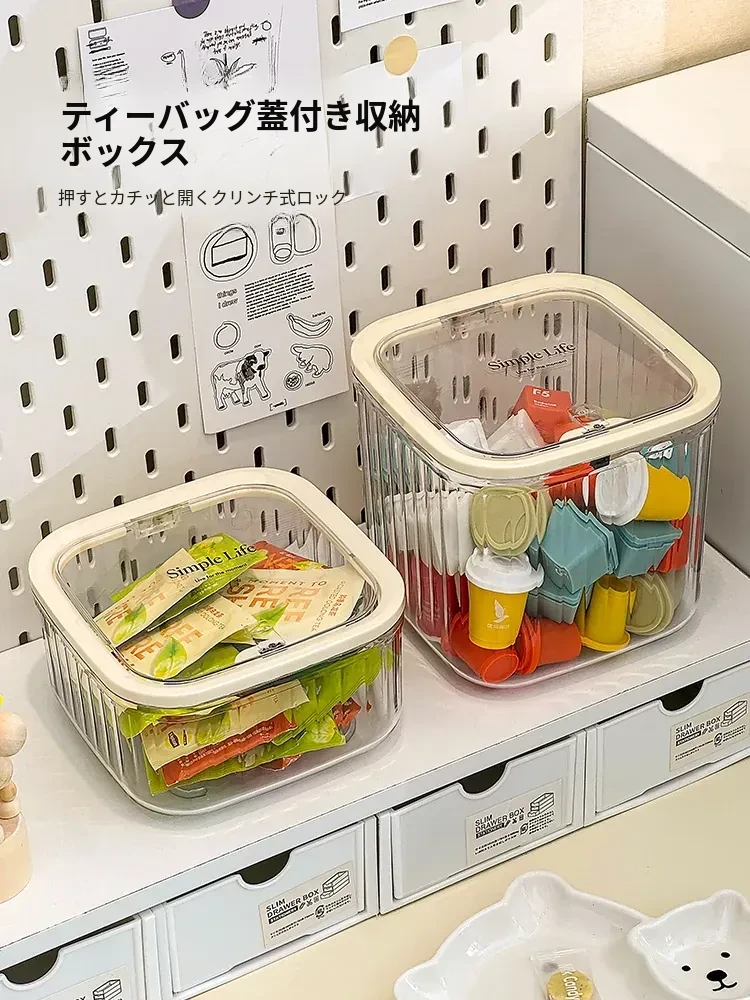 アクリル製ティーバッグ収納ボックス|デスク上のコーヒーカプセルやスナックをスマートに整理!埃を防ぎ、オフィスや家庭での美しい空間を実現する必携アイテム!