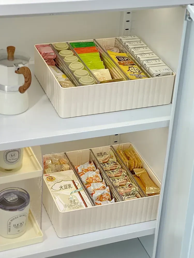 おしゃれなオフィス&家庭用スナック収納ボックス|ティーバッグやコーヒーカプセルの整理整頓に最適な仕切り付き収納ボックス|キッチンやデスク周りをスッキリ!