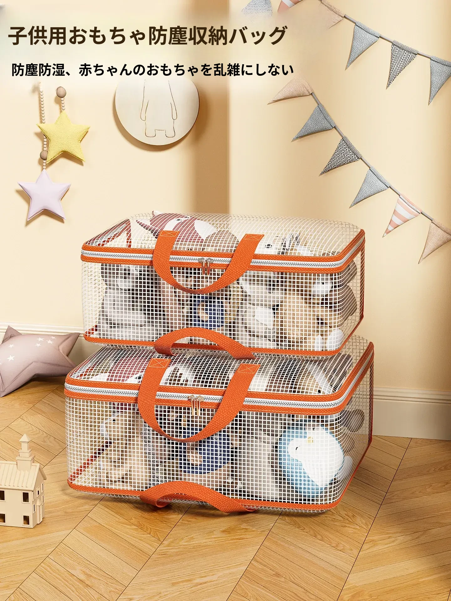 ぬいぐるみ収納の必需品!透明な収納ボックスでおもちゃをすっきり整理。防塵ジッパーバッグで、子供のお人形やぬいぐるみを安全に保管。お部屋をスッキリ整頓して、遊び心満載の空間を実現!