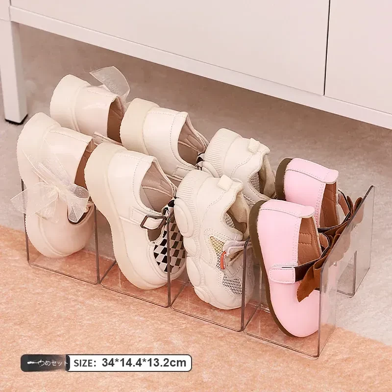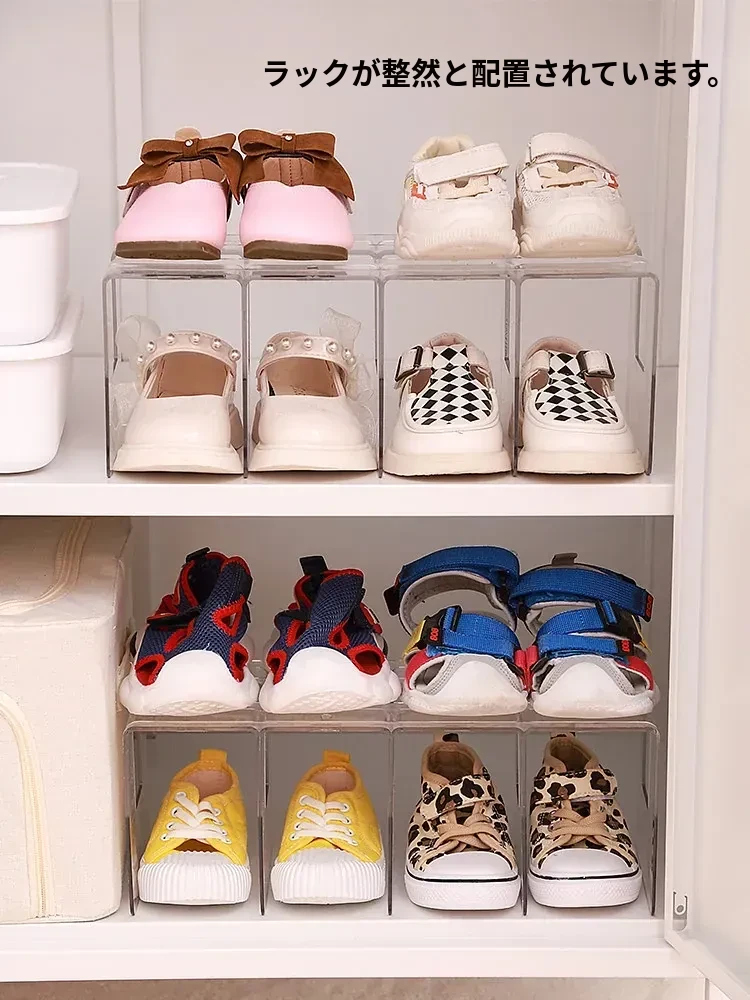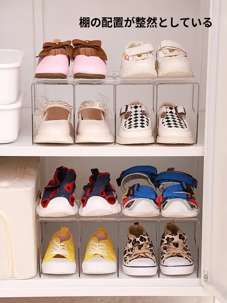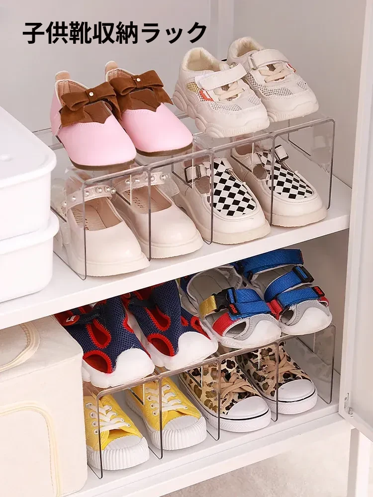 子供靴収納の救世主!スペースを節約する透明仕切り付きシューズキャビネットオーガナイザー - 家庭用キャビネットに最適!靴をスッキリ整理して、可愛いお部屋を実現しましょう!